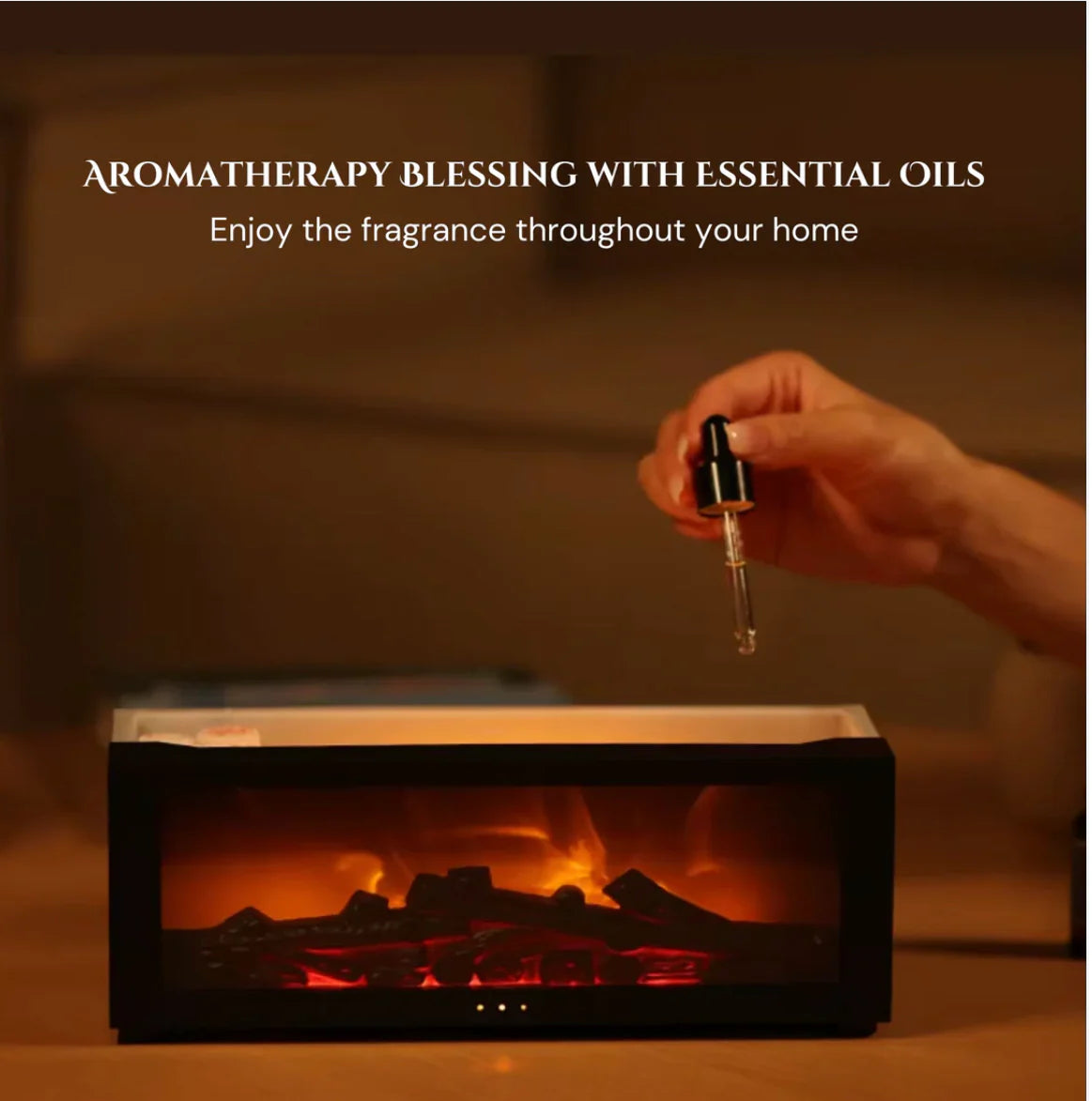 Powered by ultrasonic cool mist technology (2.4MHz) and a 300 ml water tank, this diffuser releases a fine, gentle mist for hours without constant refills, helping ease dry air so your throat, nose, and skin feel more comfortable. As a quiet aromatherapy diffuser, it turns water and a few drops of oil into a calming scented experience that helps you relax, focus, or fall asleep. With 3 x 10 ml essential oils included, you get the full cozy, fireplace-inspired aromatherapy experience right out of the box.